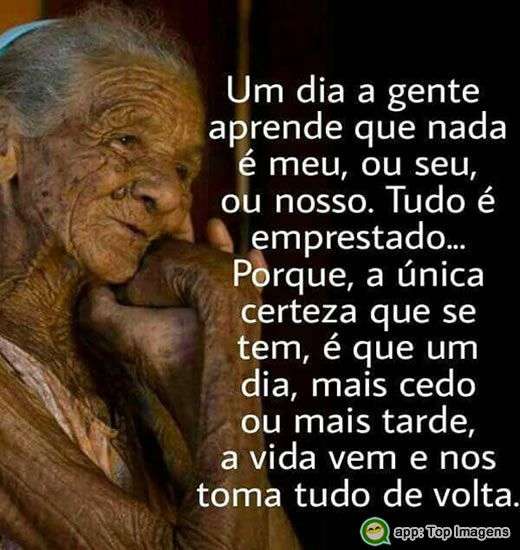 Porque, a única certeza que se tem, é que um dia, mais cedo ou mais tarde, a vida vem e nos toma tudo de volta.