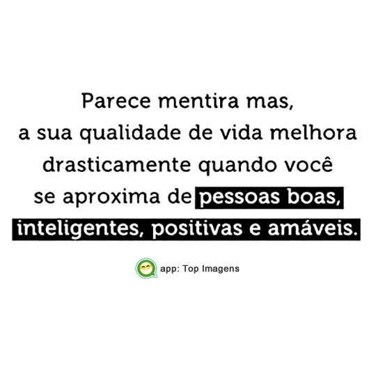 Parece mentira mas, a sua qualidade de vida melhora drasticamente quando você se aproxima de pessoas boas, inteligentes, positivas e amáveis.