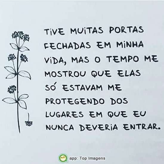Tive muitas portas fechadas em minha vida, mas o tempo me mostrou que elas só estavam me protegendo dos lugares em que eu nunca deveria entrar.