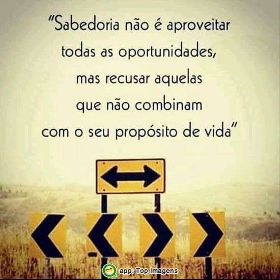 Sabedoria não é aproveitar todas as oportunidades, mas recusar aquelas que não combinam com o seu propósito de vida.