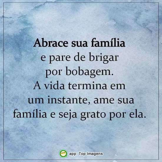 Abrace sua família e pare de brigar por bobagem.