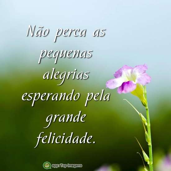 Não perca as pequenas alegrias esperando pela grande felicidade.