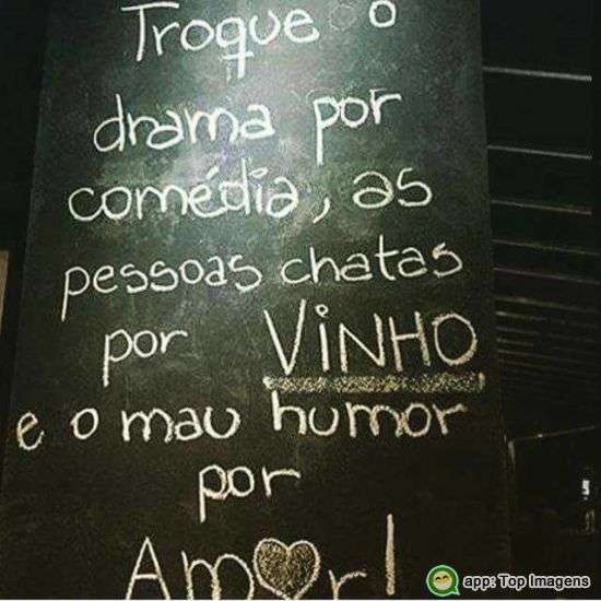 Troque o drama por comédia, as pessoas chatas por vinho e o mau humor por Amor!