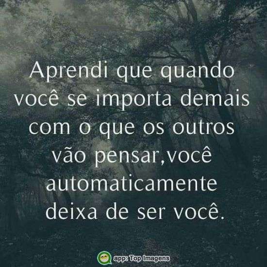 Aprendi que quando você se importa demais com o que os outros vão pensar, você automaticamente deixa de ser você.