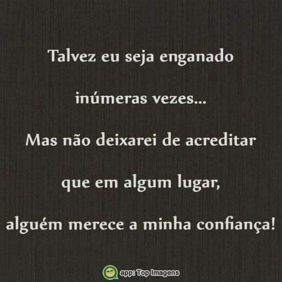 Mas não deixarei de acreditar que em algum lugar, alguém merece a minha confiança!
