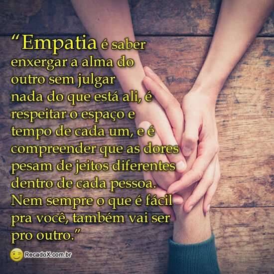 Empatia é saber enxergar a alma do outro sem julgar nada do que está ali, é respeitar o espaço e tempo de cada um, e é compreender que as dores pesam de jeitos diferentes dentro de cada pessoa.