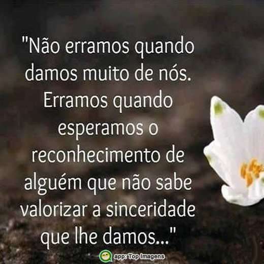 Erramos quando esperamos o reconhecimento de alguém que não sabe valorizar a sinceridade que lhe damos.