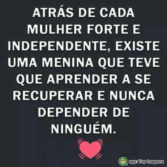 Atrás de cada mulher forte e independente, existe uma menina que teve que aprender a se recuperar e nunca depender de ninguém.