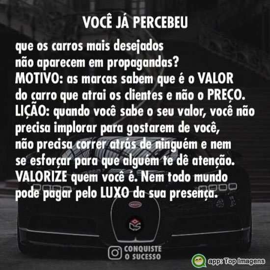 LIÇÃO: Quando você sabe o seu valor, você não precisa implorar para gostarem de você, não precisa correr atrás de ninguém e nem se esforçar para que alguém te dê atenção.