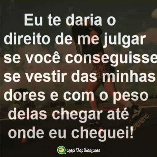 Eu te daria o direito de me julgar se você conseguisse se vestir das minhas dores e com o peso delas chegar até onde eu cheguei!