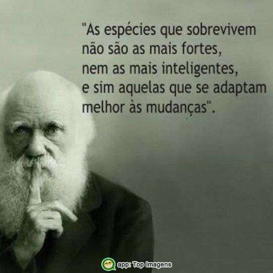 As espécies que sobrevivem não são as mais fortes, nem as mais inteligentes, e sim aquelas que se adaptam melhor às mudanças.