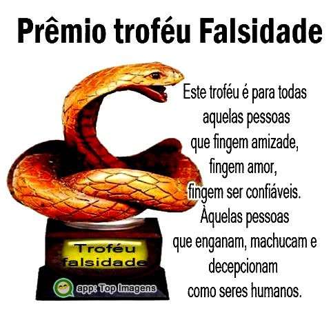 Este troféu é para todas aquelas pessoas que fingem amizade, fingem amor, fingem ser confiáveis.