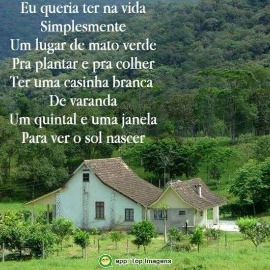 Eu queria ter na vida simplesmente um lugar de mato verde pra plantar e pra colher.