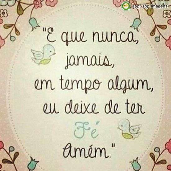 E nunca, jamais, em tempo algum eu deixe de ter fé. Amém.