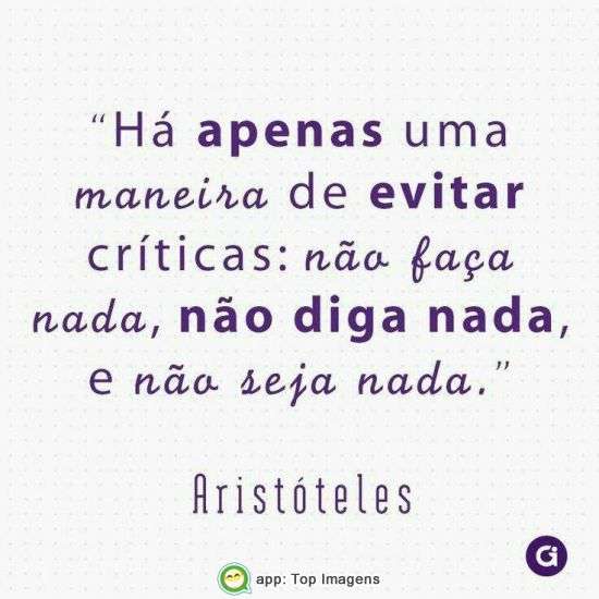 Há apenas uma maneira de evitar críticas: Não faça nada, não diga nada, e não seja nada.