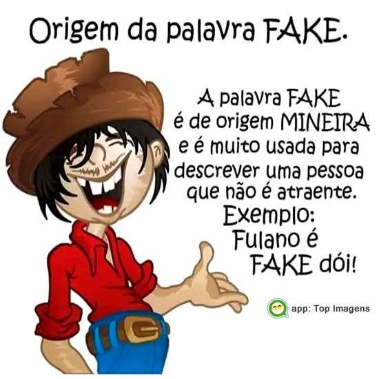 A palavra fake é de origem mineira e é muito usada para descrever uma pessoa que não é atraente.