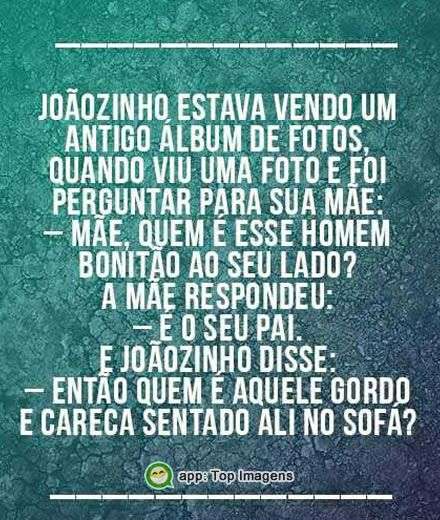 Joãozinho estava vendo um antigo álbum de fotos, quando viu uma foto e foi perguntar para sua mãe: