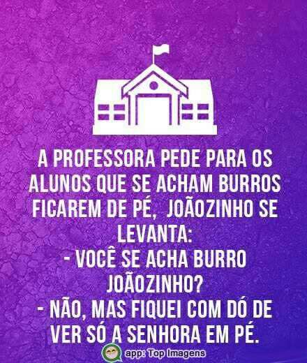 A professora pede para os alunos que se acham burros ficarem de pé, Joãozinho se levanta: