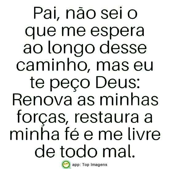 Pai, não sei o que me espera ao longo desse caminho, mas eu te peço Deus: Renova minhas forças, restaura a minha fé e me livre de todo mal.