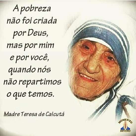 A pobreza não foi criada por Deus, mas por mim e por você, quando nós não repartimos o que temos.