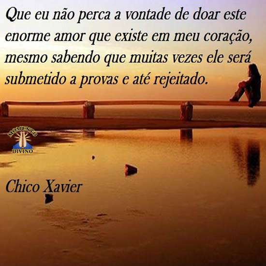 Que eu não perca a vontade de doar este enorme amor que existe em meu coração, mesmo sabendo que muitas vezes ele está submetido a provas e até rejeitado.