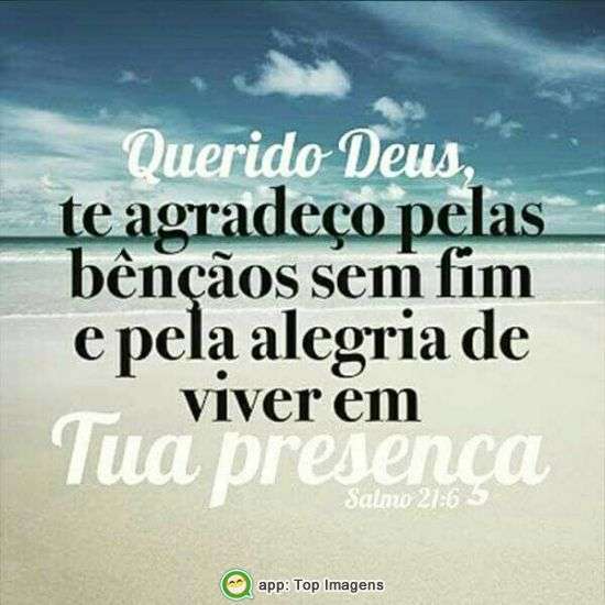 Querido Deus te agradeço pelas bênçãos sem fim e pela alegria de viver em tua presença.