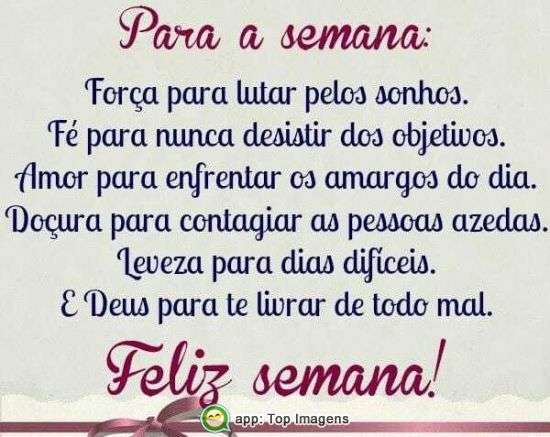 Fé para nunca desistir dos objetivos. Amor para enfrentar os amargos do dia. Doçura para contagiar as pessoas azedas. Leveza para dias difíceis.