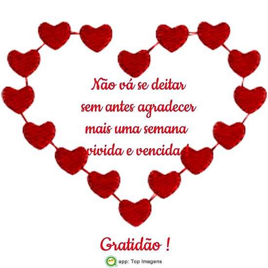 Não vá se deitar sem antes agradecer mais uma semana vivida e vencida!