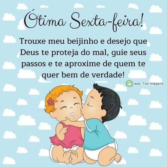 Trouxe meu beijinho e desejo que Deus te proteja do mal, guie seus passos e te aproxime de quem te quer bem de verdade!