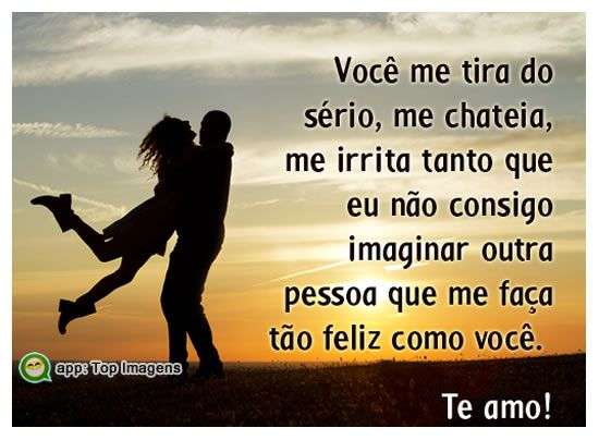 Você me tira do sério, me chateia, me irrita tanto que eu não consigo imaginar outra pessoa que me faça tão feliz como você. Te amo!